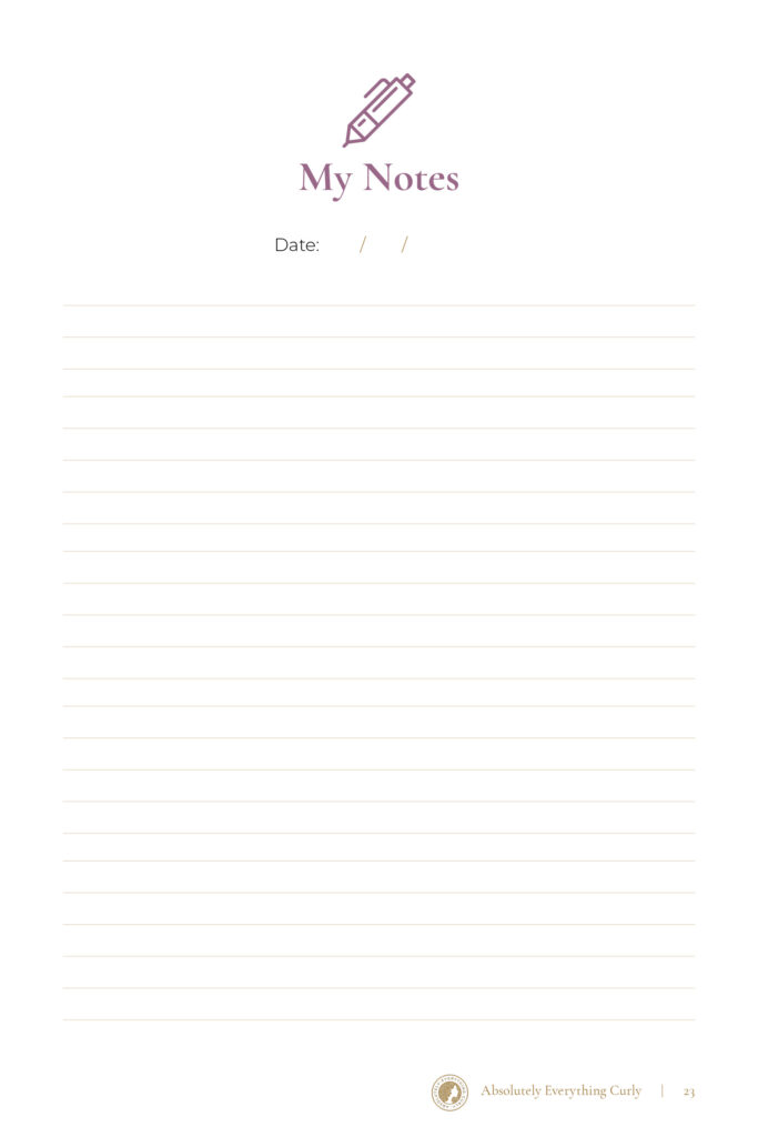 Absolutely Everything Curly created the perfect hair journal just for us curlies. The Complete Curly Hair Care and Wash Day Journal is designed to chronicle your hair routine and help you succeed in your hair journey. This journal includes blank wash days and months 1-12 allowing you to set hair goals, record any supplements taken, jot down and discover the best products for your hair, and track your results with photos so you can remember what worked and what didn’t. You’ll be able to reflect back on those days when you had lots of time for your self-care hair routine and what worked well, to duplicate on days when you have to make it work quickly.
