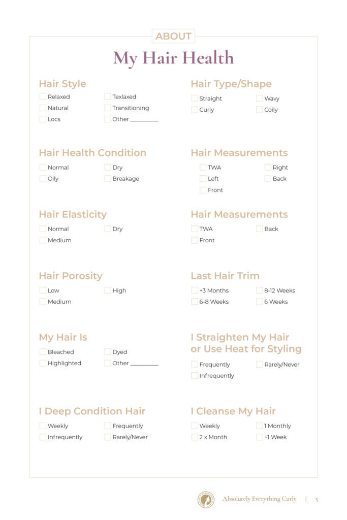 By keeping track of your hair care routine and wash days, you will learn what works and what can be changed or improved to develop a successful hair regimen – one that is unique to you!