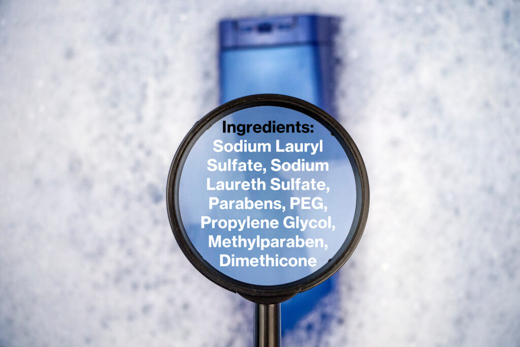 - Shampoos with sulfates. Sulfates, namely sodium lauryl sulfate & ammonium laureth sulfate, are harsh cleaning agents that create the lather in shampoos. They strip the natural oils making it dryer, frizzier, and more prone to breakage. They are also not easily rinsed out and may cause build-up over time.